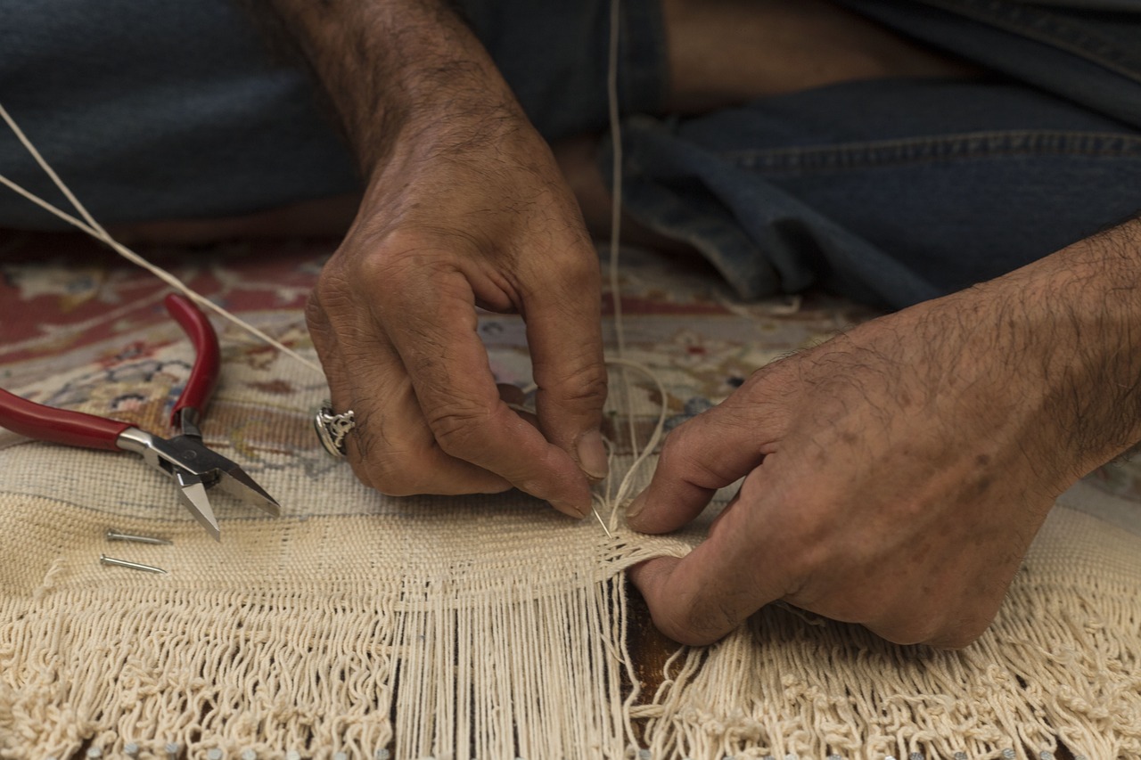 Restauration et réparation : franges, lisières, usures, déchirures ou taches.